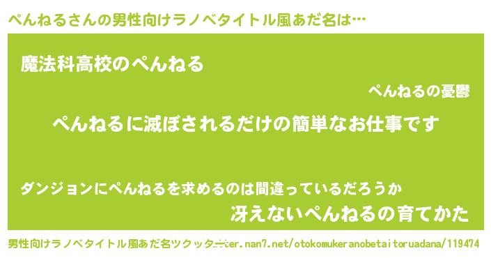 | 意味不明あだ名 | 『自称ぺんねる』『ペロリンぺんねる』 |