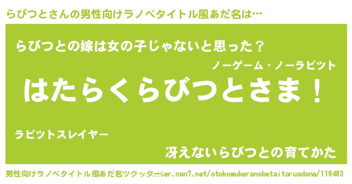 | ヒーロー風カッコイイあだ名 | 『暗黒騎士ラビ』『天空の使者らびつと』 |