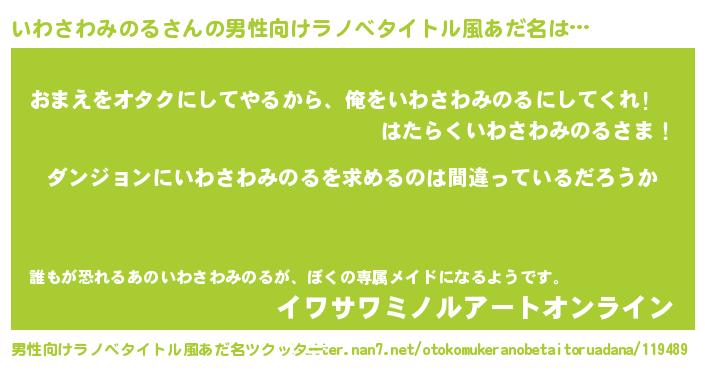 | 女子向けラノベタイトル風あだ名 | 『いわさわみのるの卵を拾いまして』 |