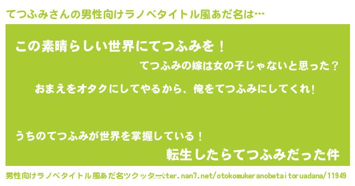 | 女子向けラノベタイトル風あだ名 | 『てつふみ夫妻のなれそめ』 |