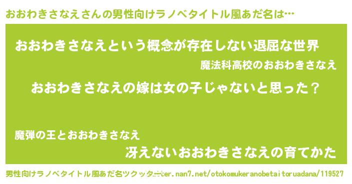 | 女子向けラノベタイトル風あだ名 | 『おおわきさなえの卵を拾いまして』 |
