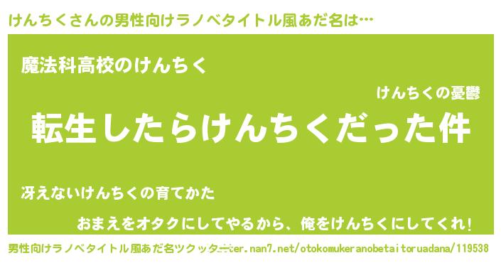 | ヘコむあだ名 | 『けんもー』『豆乳』『けんお』 |