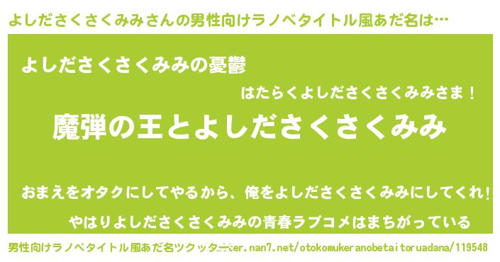 | 伝説のあだ名 | 『伝説のスナイパーよしださくさくみみ』 |