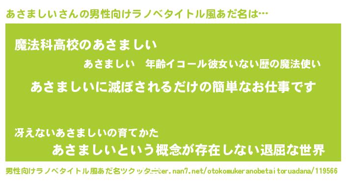 | ヘコむあだ名 | 『あさましい(震え声)』『あさふぇ~』 |