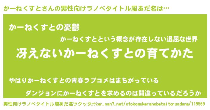 | 胡散臭い通販商品みたいなあだ名 | 『モテモテ間違いなし水晶球…その名も「かーねくすと」』 |