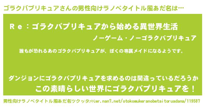 | 意味不明あだ名 | 『永久保存ゴラクバプリキュア』 |