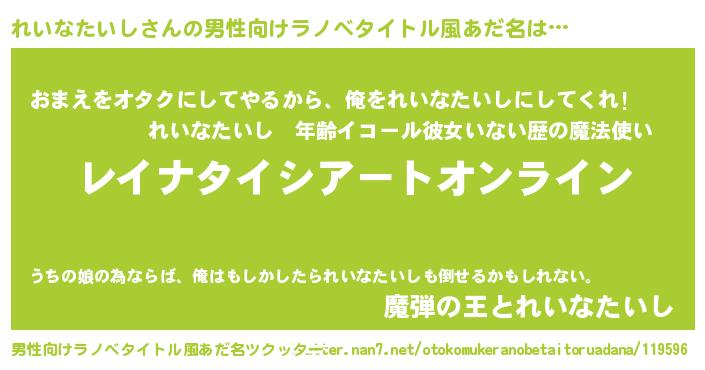 | 胡散臭い通販商品みたいなあだ名 | 『億万長者になれるブレスレット…その名も「れいなたいし」』 |
