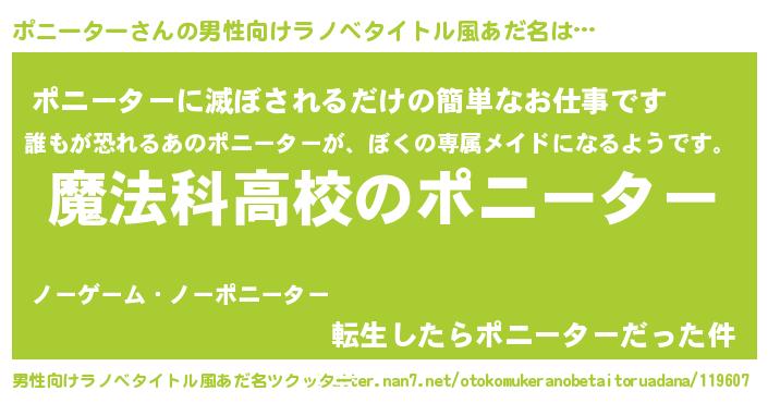 | 女子向けラノベタイトル風あだ名 | 『ポニーターなんてお断りですっ。』 |