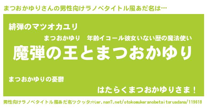 | 女子向けラノベタイトル風あだ名 | 『まつおかゆりが死なない童話 林檎のまつおかゆりの診療簿』 |