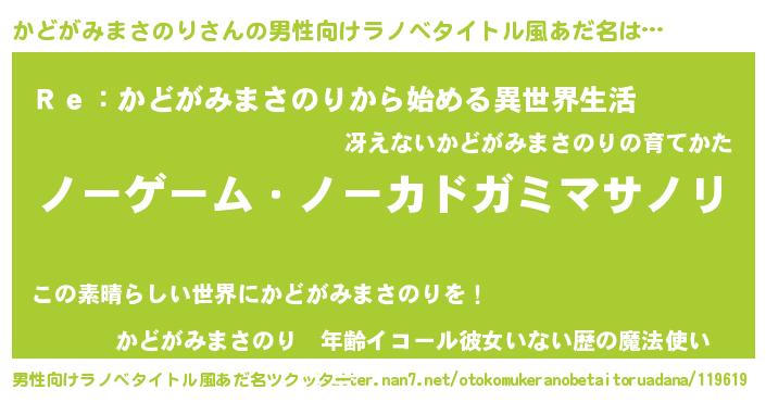 | 女子向けラノベタイトル風あだ名 | 『かどがみまさのり恋絵巻』 |