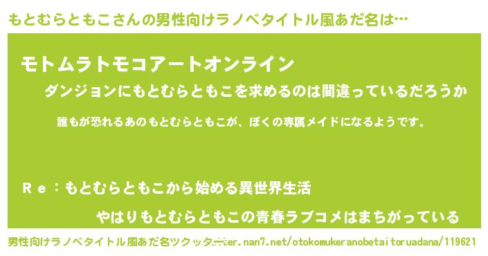 | ヘコむあだ名 | 『もとむらともこ(小並感)』『もともー』 |