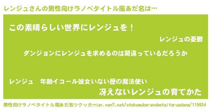 | 女子向けラノベタイトル風あだ名 | 『レンジュの卵を拾いまして』 |
