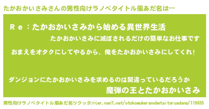 | 女子向けラノベタイトル風あだ名 | 『たかおかいさみ夫妻のなれそめ』 |