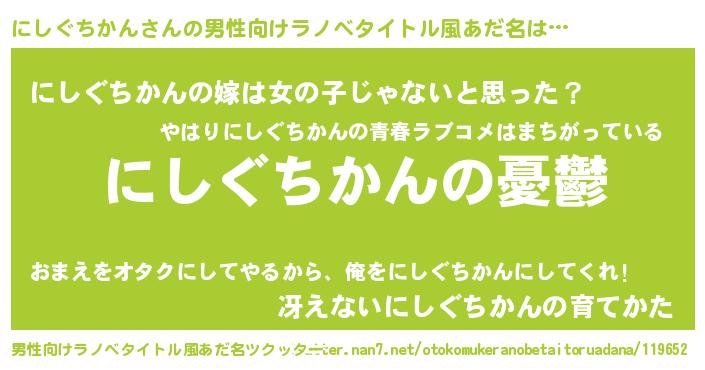 | 肩書あだ名 | 『にしぐちかん御曹司』 |