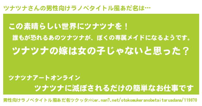 | 女子向けラノベタイトル風あだ名 | 『ツナツナ様がみてる』 |