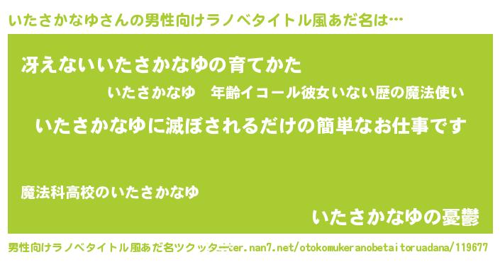 | 女子向けラノベタイトル風あだ名 | 『横柄いたさかなゆと宰相陛下』 |