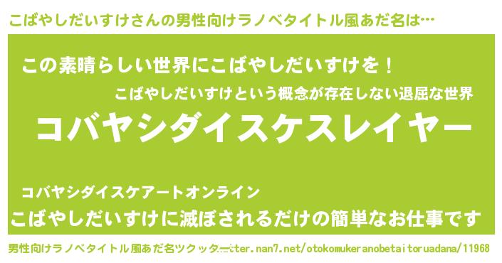 | ヒーロー風カッコイイあだ名 | 『仮面コバダー』『ネオコバヤシダイスケ』 |