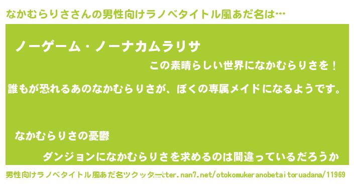 | 女子向けラノベタイトル風あだ名 | 『異世界でカフェなかむらりさを開店しました。』 |