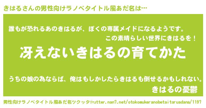 | 胡散臭い通販商品みたいなあだ名 | 『来世でも幸せになれる健康食品…その名も「きはる」』 |