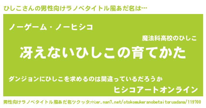 | 女子向けラノベタイトル風あだ名 | 『男装ひしこの憂鬱な任務』 |