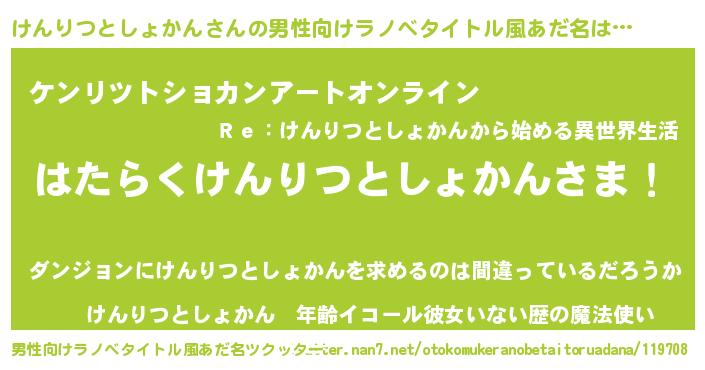 | ヘコむあだ名 | 『けんにゅー』『けん太郎』 |