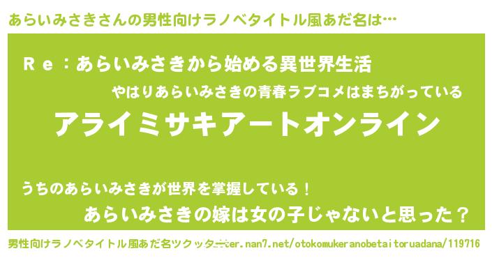 | ヒーロー風カッコイイあだ名 | 『スーパーアライミサキ』『黄金騎士アラ』 |