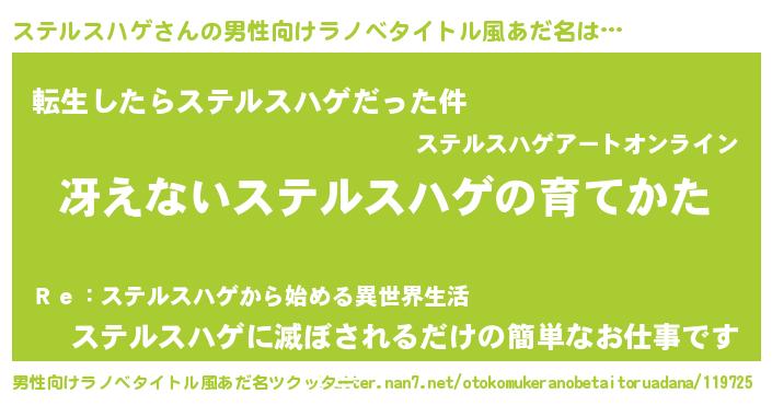| ヘコむあだ名 | 『ステっふぃ~』『ステルスハゲ(小並感)』 |