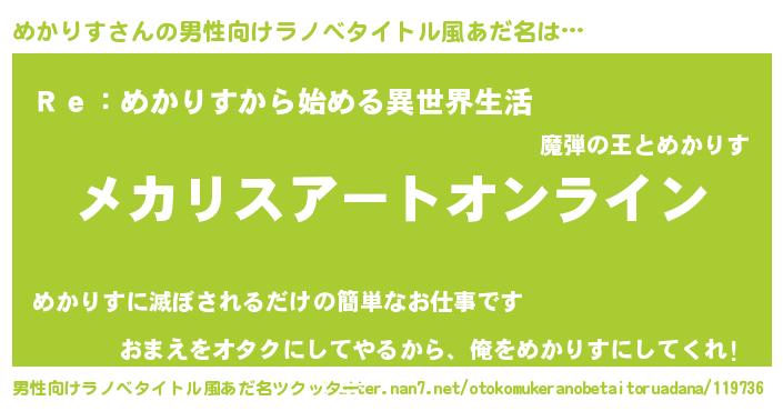 | 意味不明あだ名 | 『ペロリンめかりす』『自称めかりす』 |