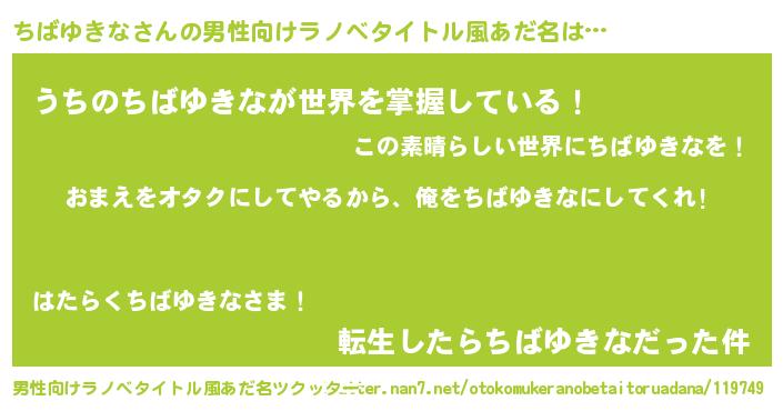 | 女子向けラノベタイトル風あだ名 | 『ちばゆきな夫妻のなれそめ』 |