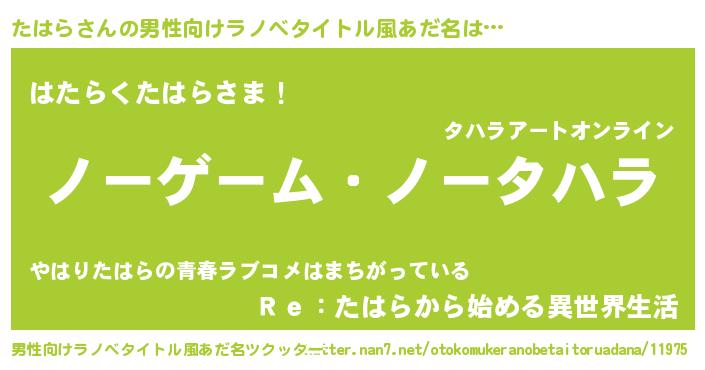 | 女子向けラノベタイトル風あだ名 | 『たはら恋絵巻』『首の姫と首なしたはら』 |