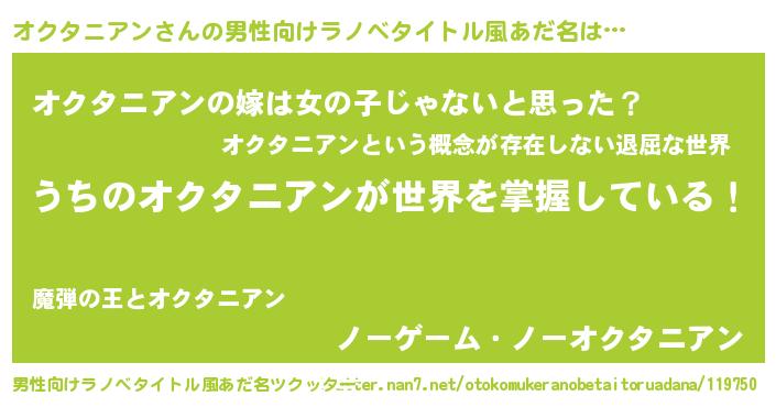 | 女子向けラノベタイトル風あだ名 | 『男装オクタニアンの憂鬱な任務』 |