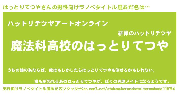 | 女子向けラノベタイトル風あだ名 | 『はっとりてつやアンティーク』 |