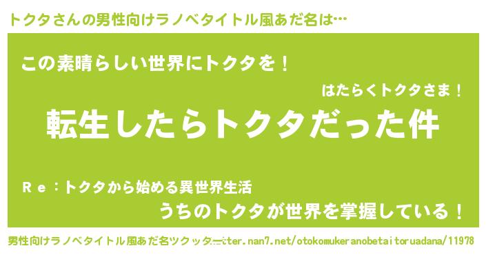 | ヒーロー風カッコイイあだ名 | 『仮面トクダー』『最強戦士トクタ』 |
