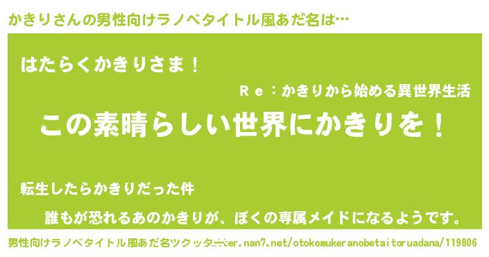 | 意味不明あだ名 | 『住所不定無職かきり(41歳)』『自称かきり』 |