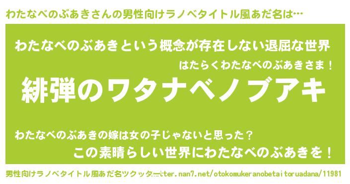 | 意味不明あだ名 | 『永久保存わたなべのぶあき』 |