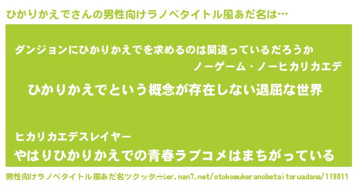 | 女子向けラノベタイトル風あだ名 | 『異世界で失敗しない100のひかりかえで』 |