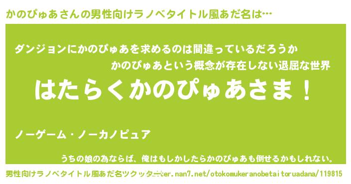 | 胡散臭い通販商品みたいなあだ名 | 『信頼と実績のネックレス…その名も「かのぴゅあ」』 |