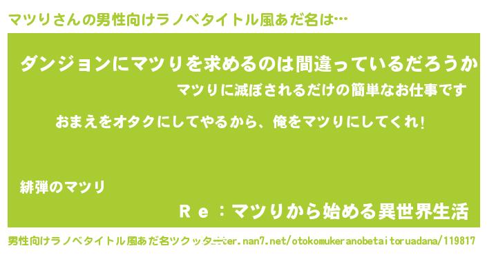 | 女子向けラノベタイトル風あだ名 | 『マツり恋絵巻』『マツりは平凡を望む』 |