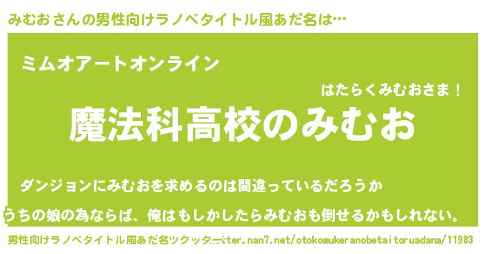 | 女子向けラノベタイトル風あだ名 | 『みむおアンティーク』『みむおの婚約者』 |