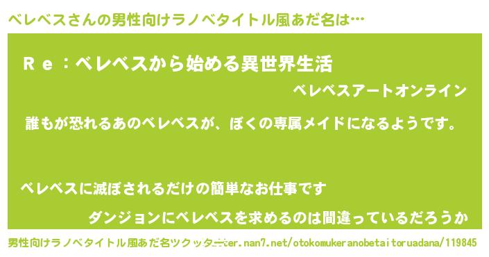 | 意味不明あだ名 | 『永久保存ベレベス』『自称ベレベス』 |
