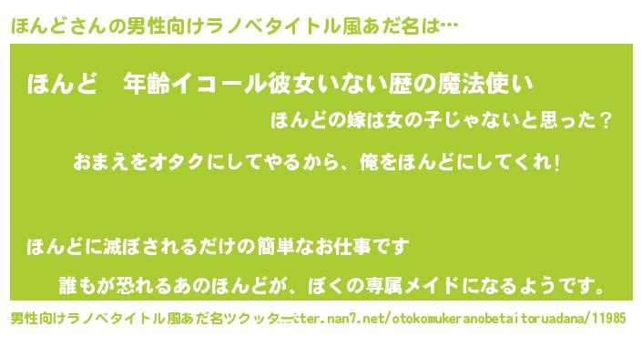 | 女子向けラノベタイトル風あだ名 | 『ほんど夫妻のなれそめ』 |