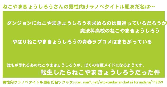 | ファンタジー風あだ名 | 『エターナルネコヤマキョウシロウー』 |