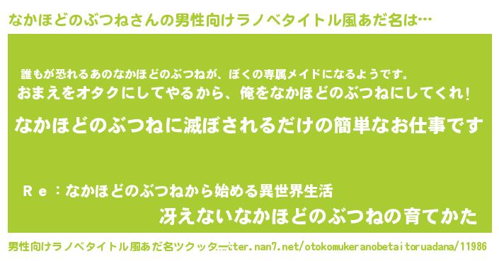 | 胡散臭い通販商品みたいなあだ名 | 『来世でも幸せになれる健康食品…その名も「なかほどのぶつね」』 |