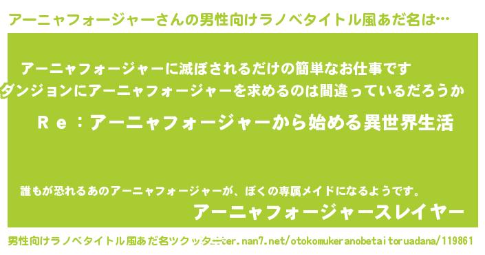 アーニャフォージャーさんの男性向けラノベタイトル風あだ名をツクッター!