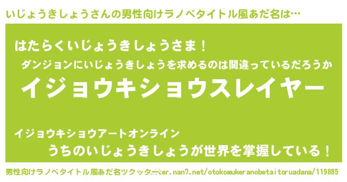 | ヒーロー風カッコイイあだ名 | 『魔戒騎士イジ』『ネオイジョウキショウ』 |