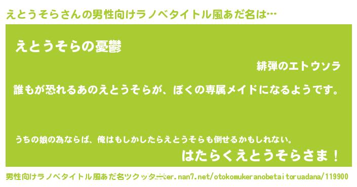 | ヘコむあだ名 | 『えとうそら(笑)』『えとにゅー』 |