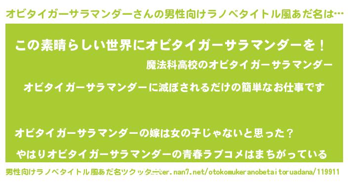| 意味不明あだ名 | 『住所不定無職オビタイガーサラマンダー(84歳)』 |