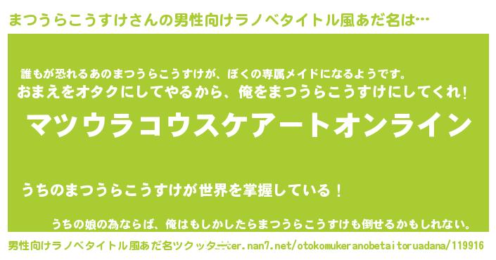 | 肩書あだ名 | 『まつうらこうすけ御曹司』 |