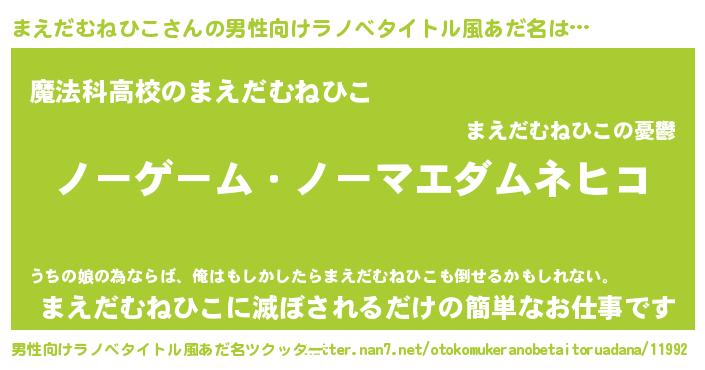 | 女子向けラノベタイトル風あだ名 | 『死神まえだむねひこの再婚』 |