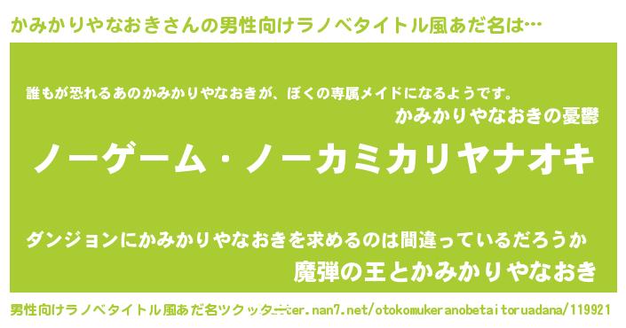 | ヘコむあだ名 | 『かみかりやなおき(遠い目)』『かみを』 |